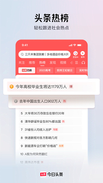今日头条,懂你的信息平台,官方推荐精品应用,千万网友与你一起在头条!热点资讯应有尽有 — 智能推荐你感兴趣的信息、无数明星大V在这里跟你互动。
